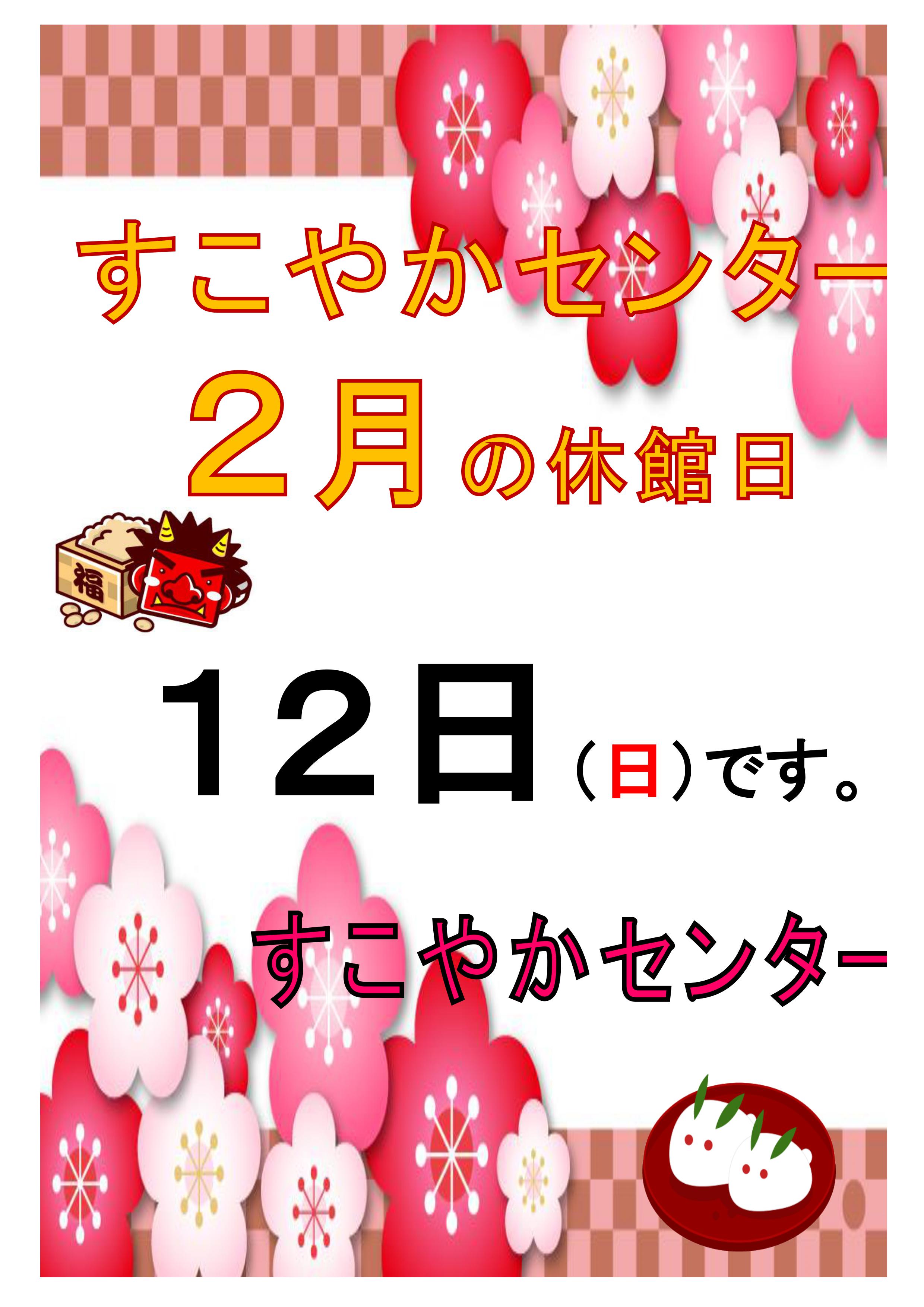 2月休館日のお知らせをいたします。