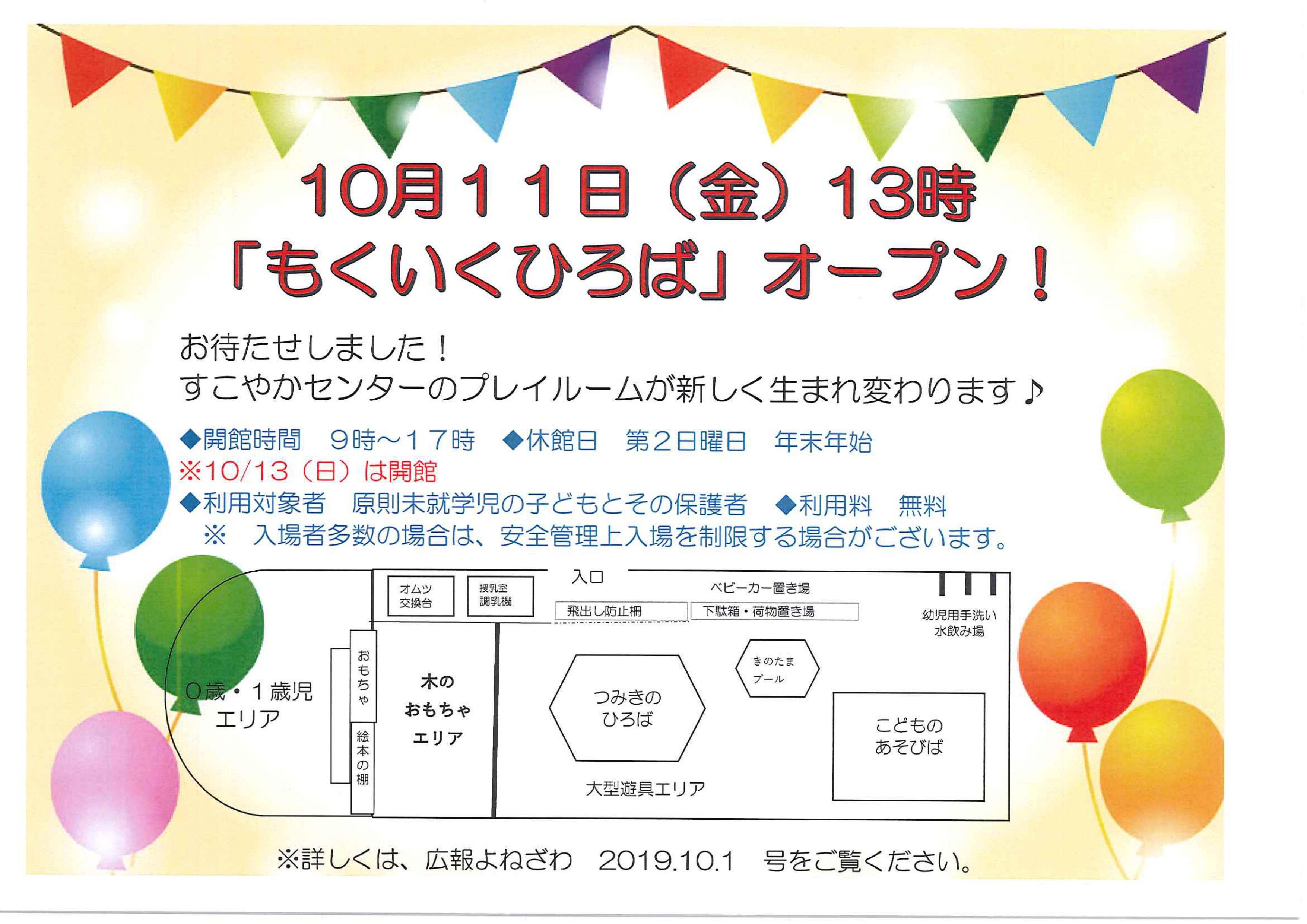 「もくいくひろば」オープンの日程のお知らせ