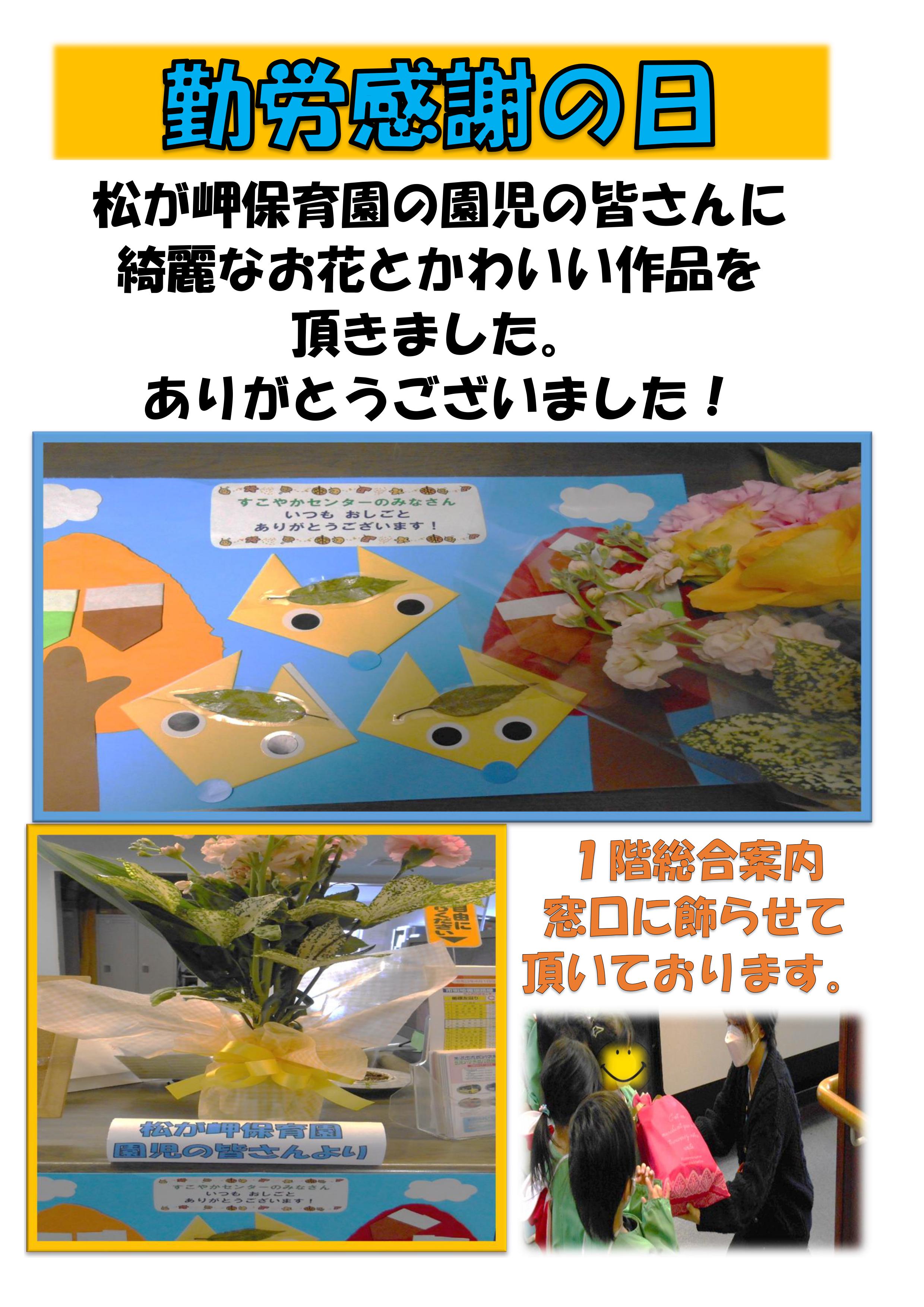 「勤労感謝の日プレゼント」 松が岬保育園の皆さんより頂きました!