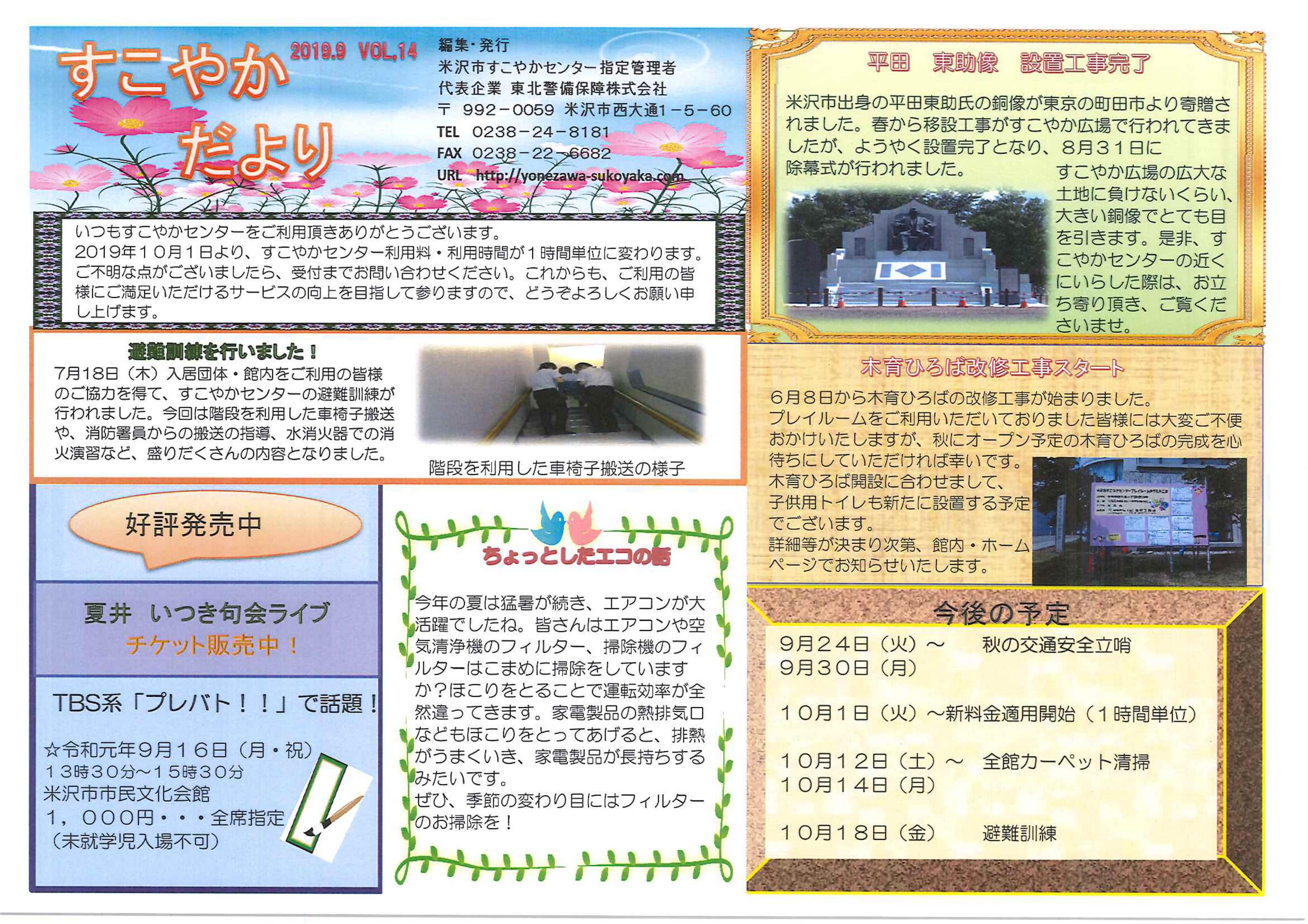 Copyright(c) 2014 米沢市すこやかセンター All Rights Reserved. 指定管理者 東北警備保障株式会社