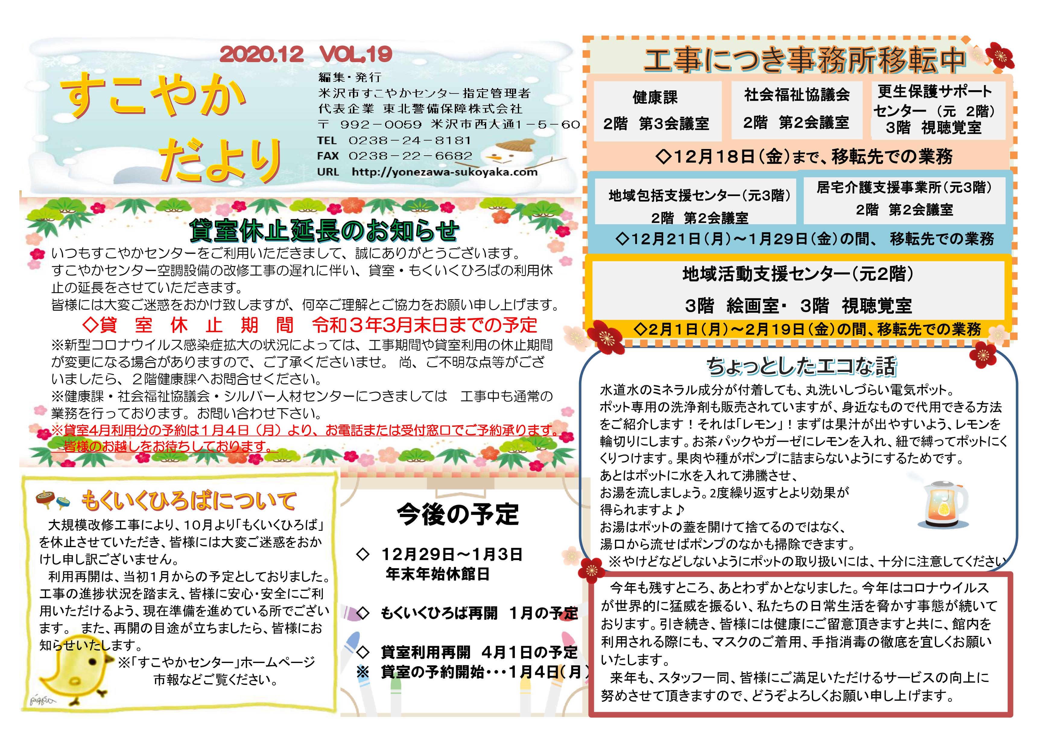 Copyright(c) 2014 米沢市すこやかセンター All Rights Reserved. 指定管理者 東北警備保障株式会社