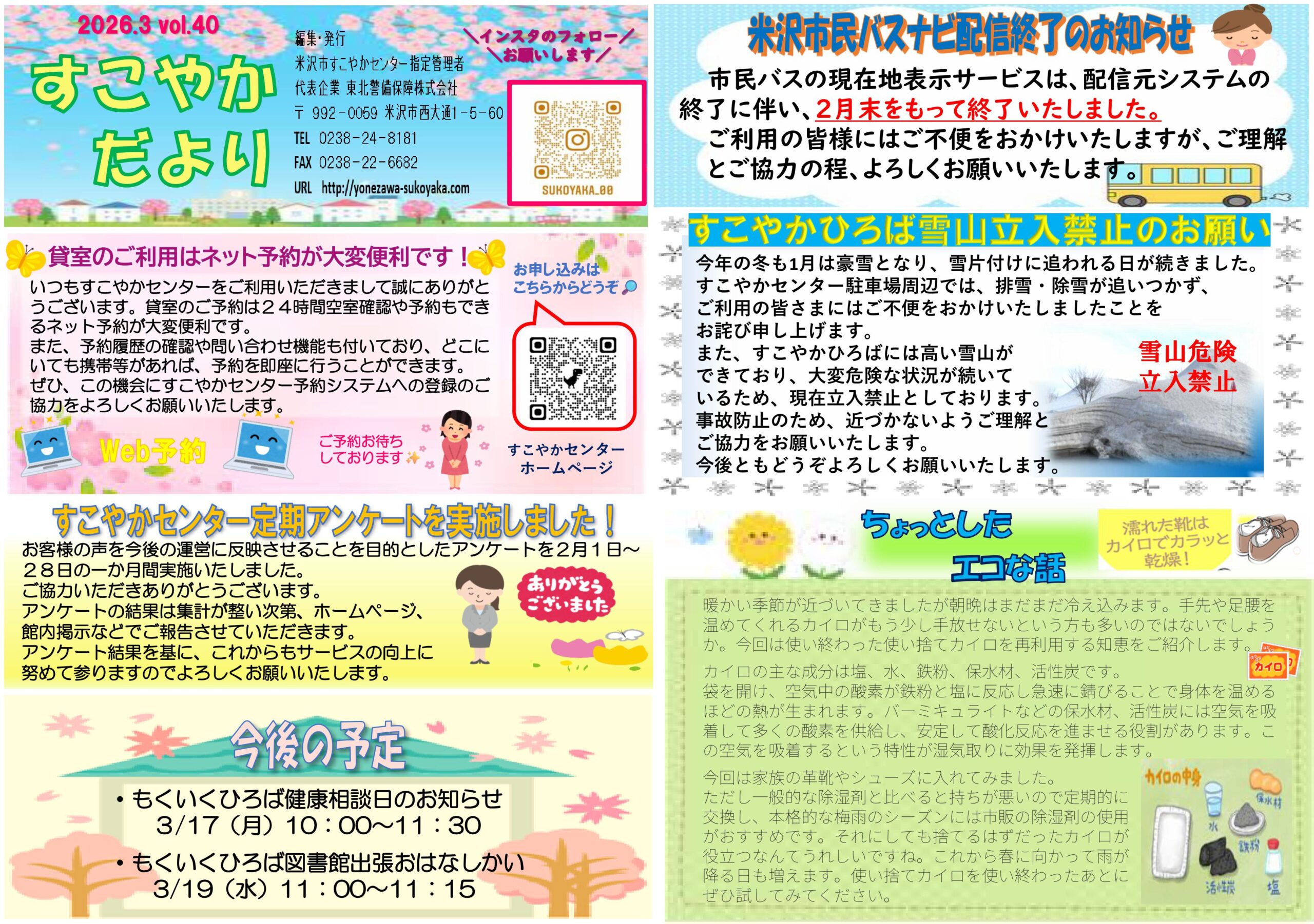 この度、すこやかだよりvol.40春号を発行いたしました。