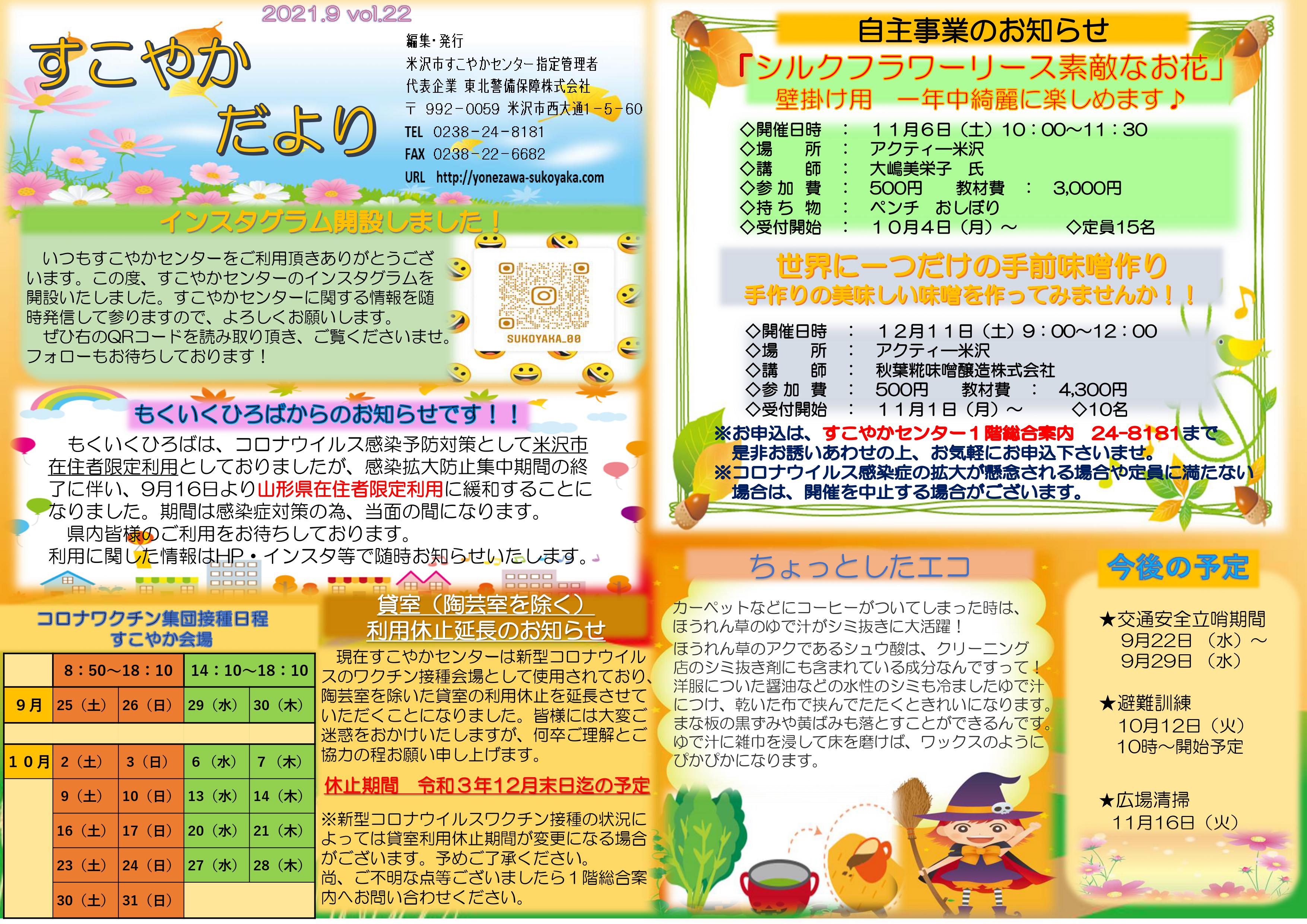 この度、すこやかだよりVOL,22秋号を発行いたしましたので、ご覧いただきますよう