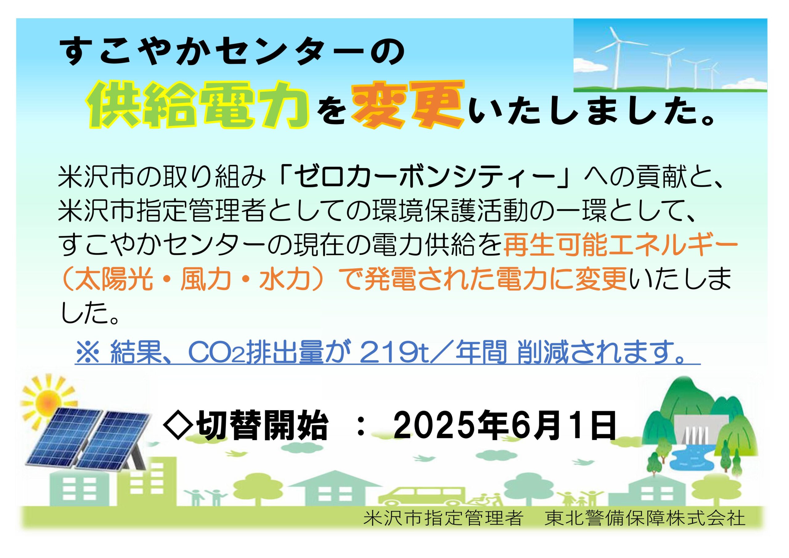 すこやかセンター供給電力変更のお知らせ