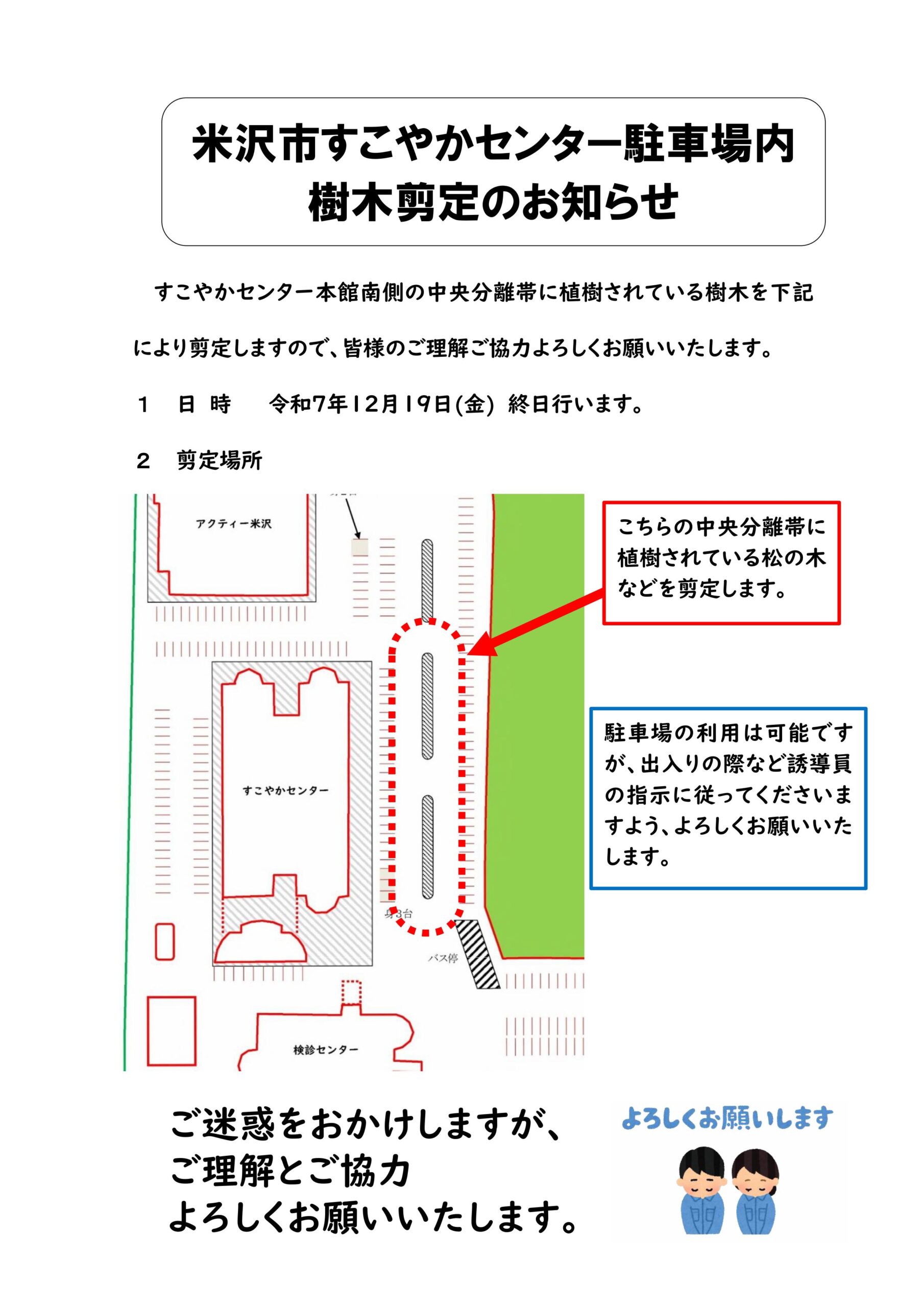 すこやかセンター駐車場内樹木剪定のお知らせ