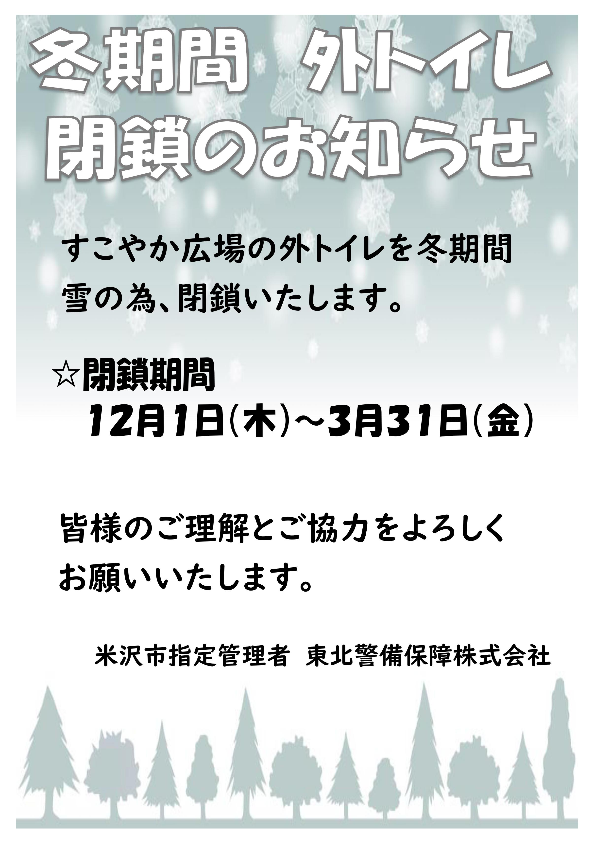 冬期間、外トイレを閉鎖致します。