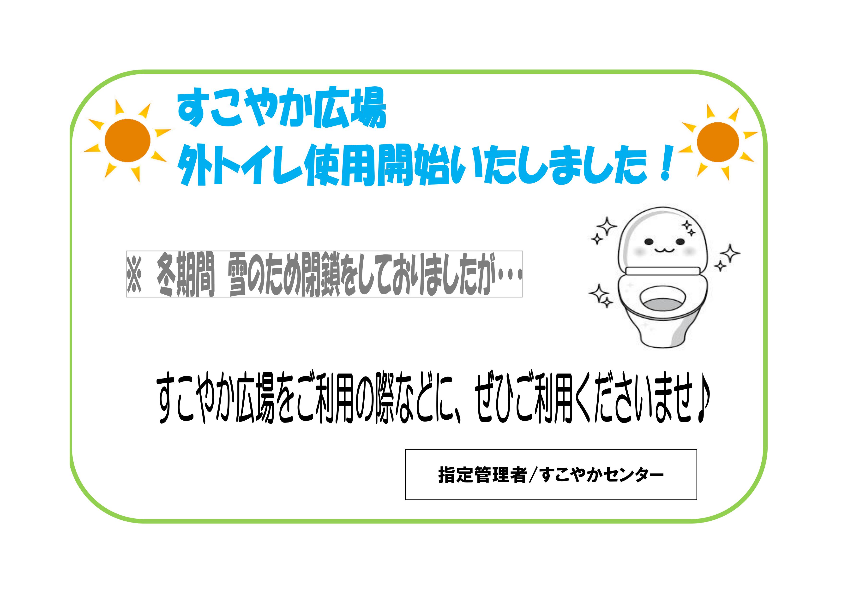冬期間、雪のため「すこやか広場 外トイレ」を閉鎖しておりましたが、