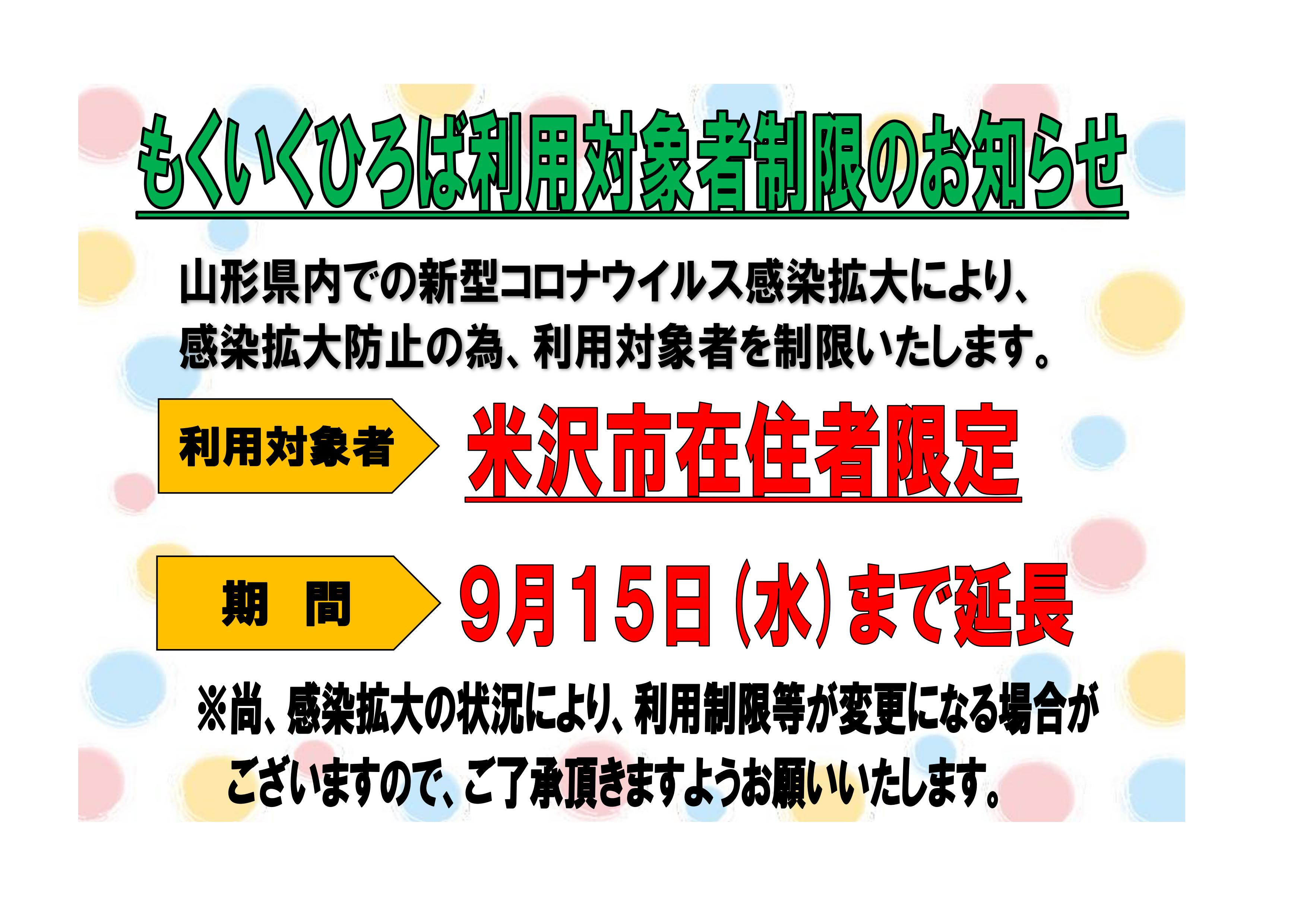 米沢市在住者限定利用としておりましたが、9月15日まで延長する事になりました。