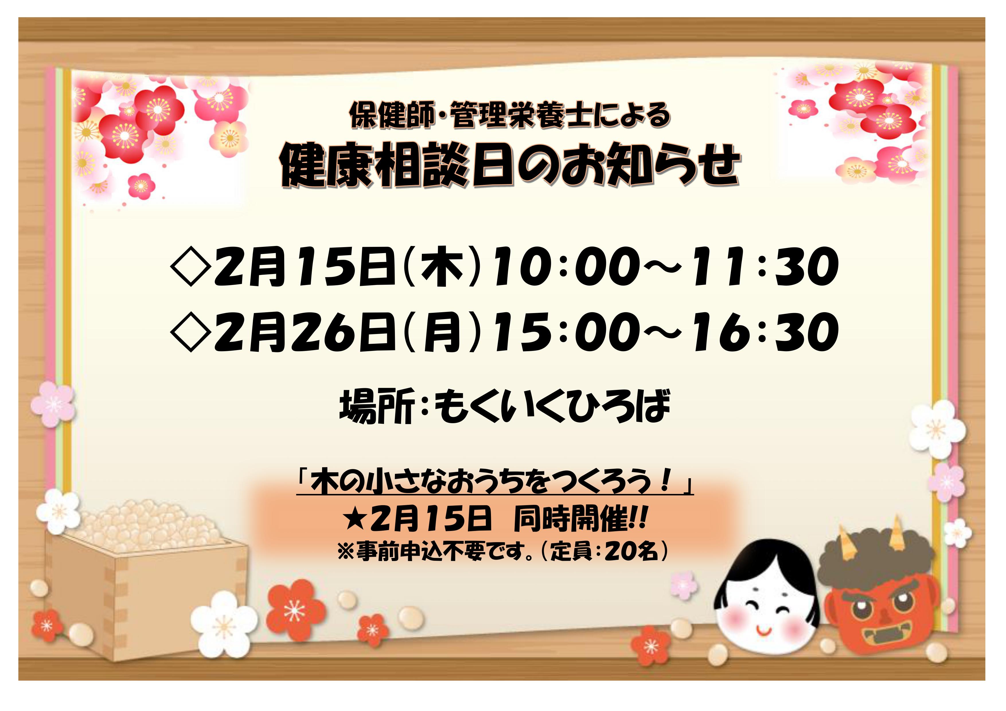 2月のもくいくひろば健康相談日は次の通りです。