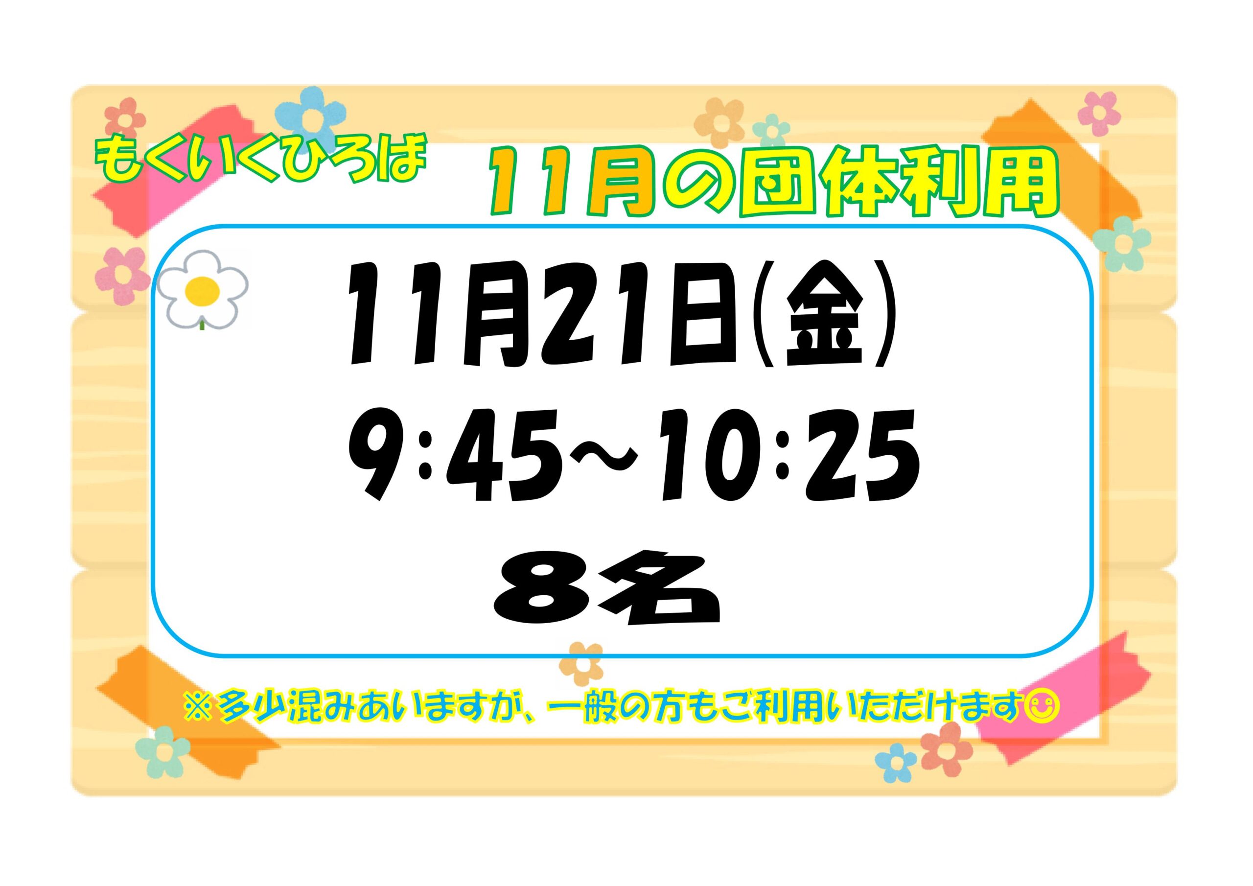 11月のもくいくひろばの団体利用日をお知らせいたします。