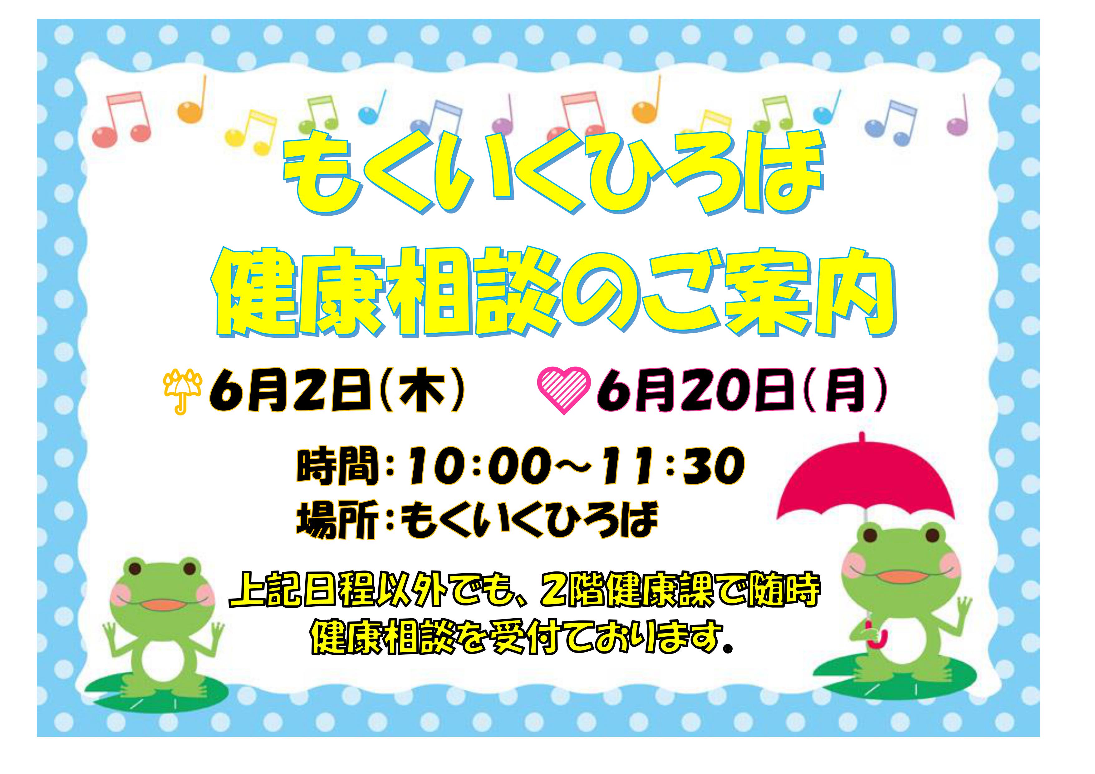 6月のもくいくひろば健康相談日をお知らせいたします。