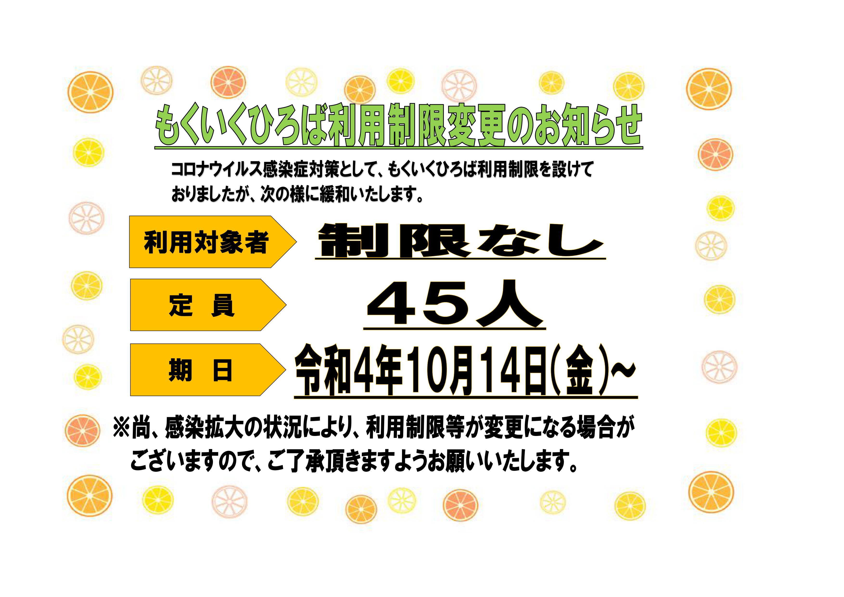 コロナウイルス感染症対策として、もくいくひろば利用制限を設けて