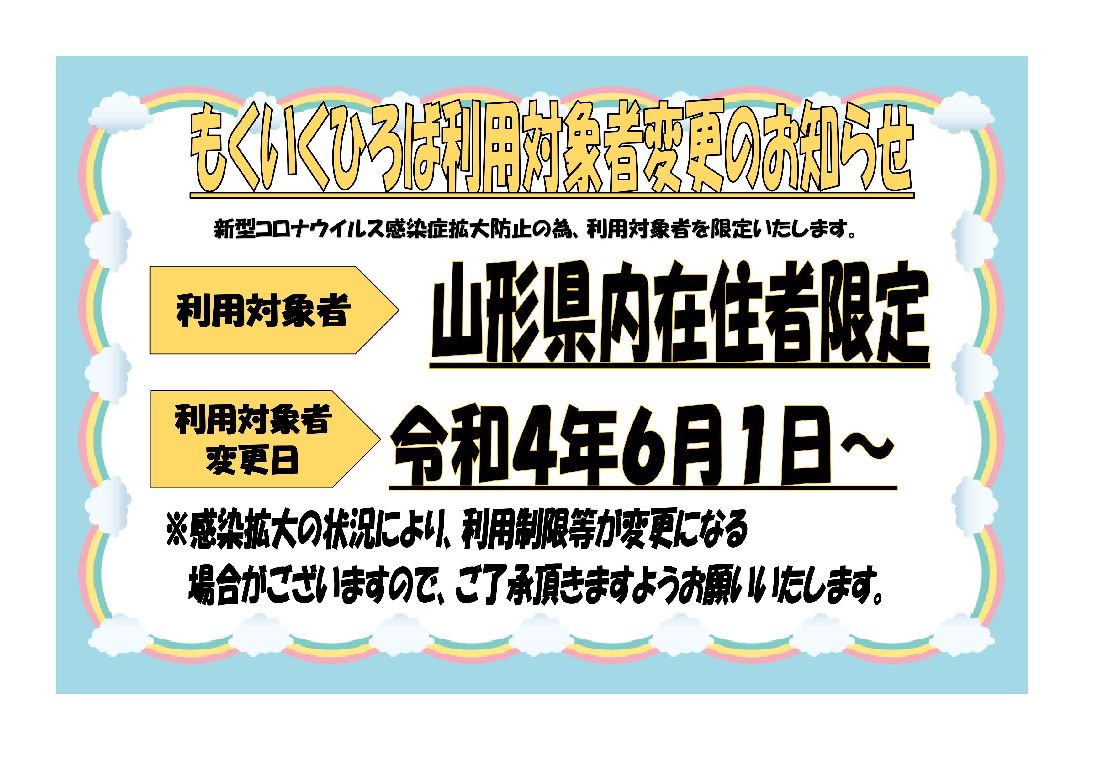 6月1日(水)より「山形県内在住者限定利用」に変更になりますので