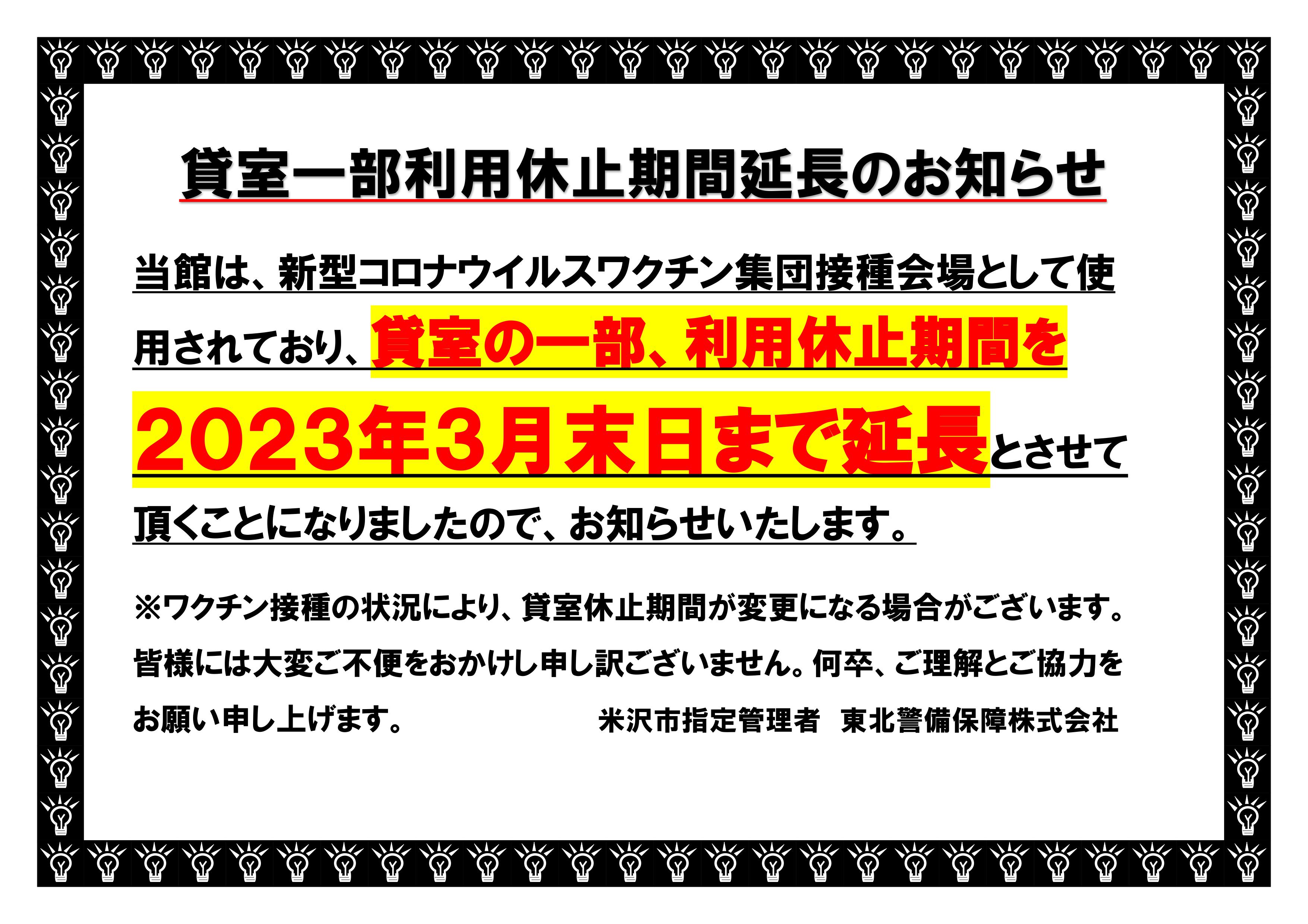 貸室一部利用休止期間延長のお知らせ