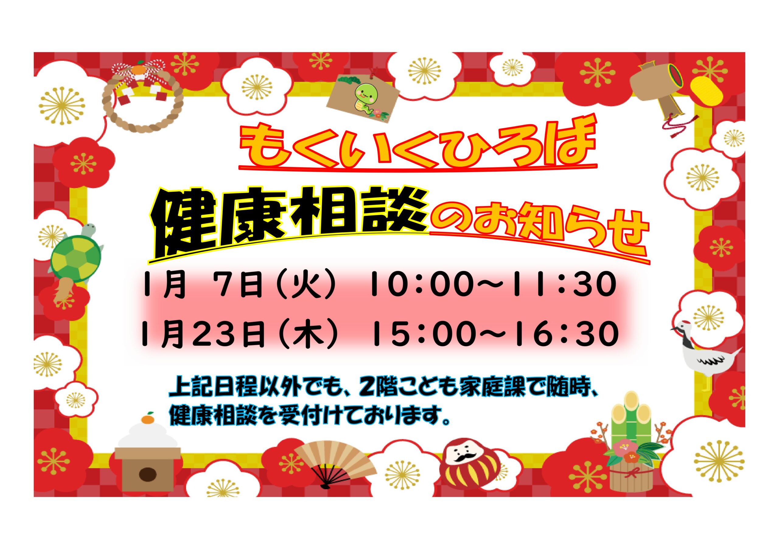 1月のもくいくひろば健康相談は次の2日間です。