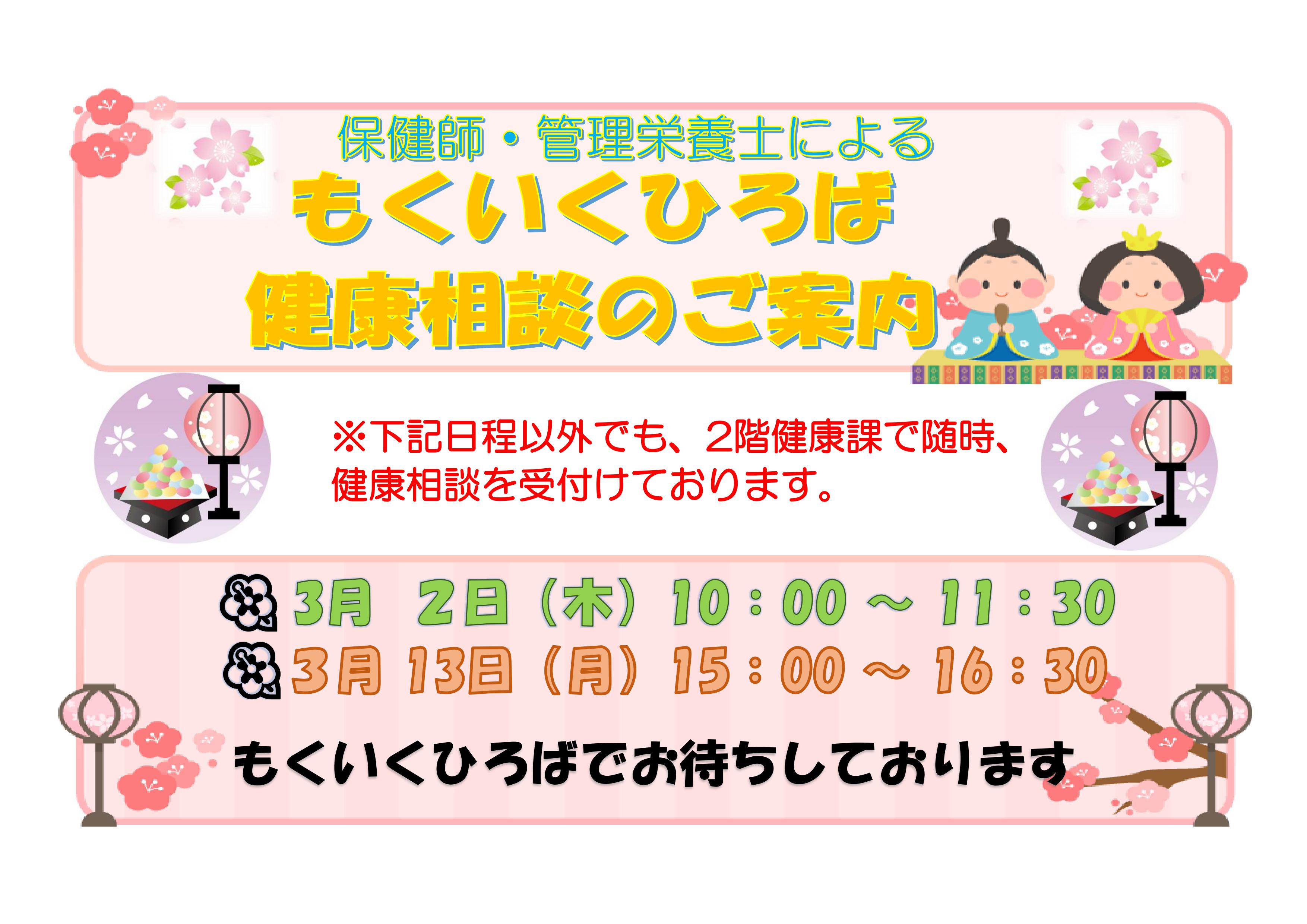 3月のもくいくひろば健康相談日のお知らせをいたします。