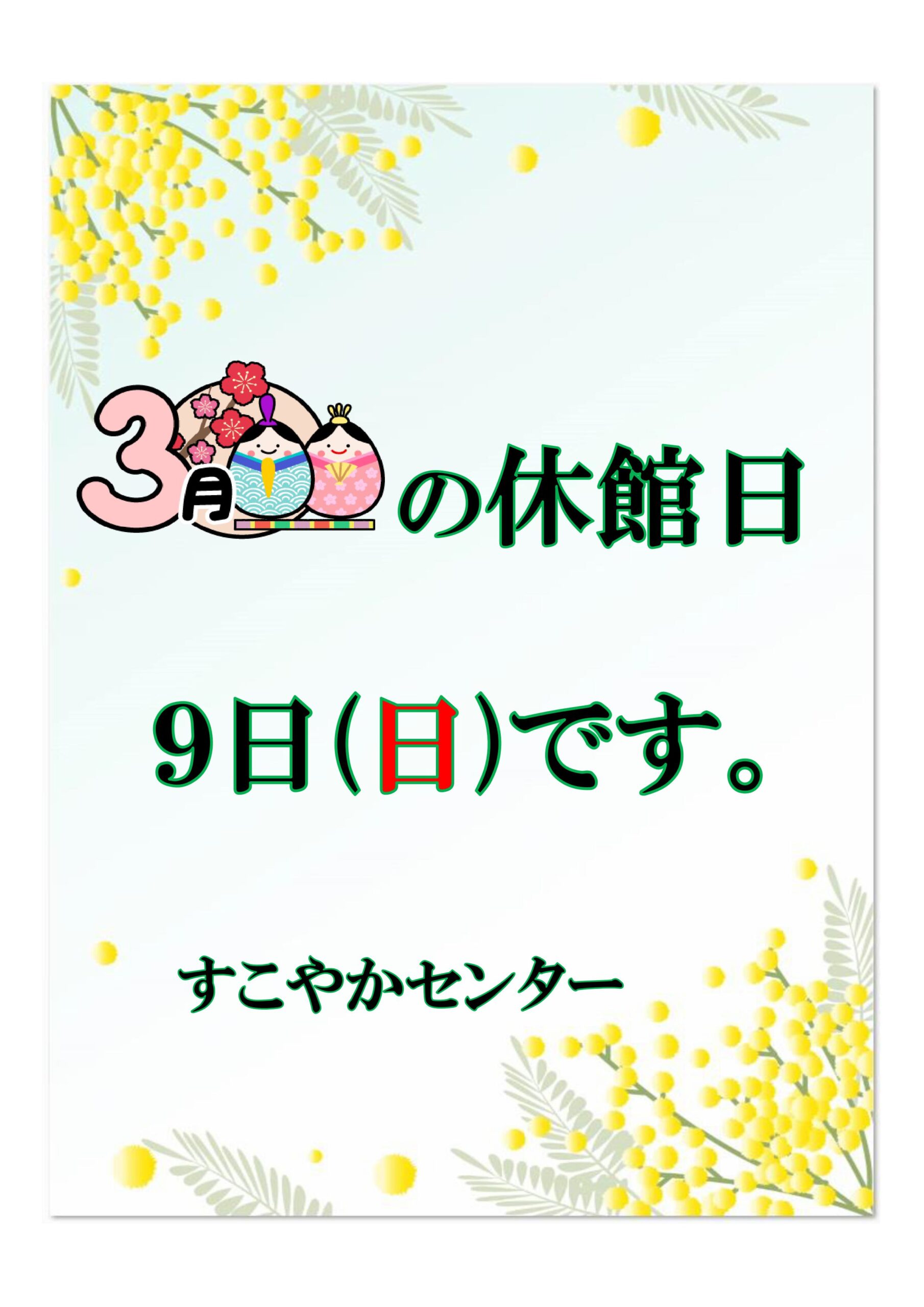 3月の休館日のお知らせ
