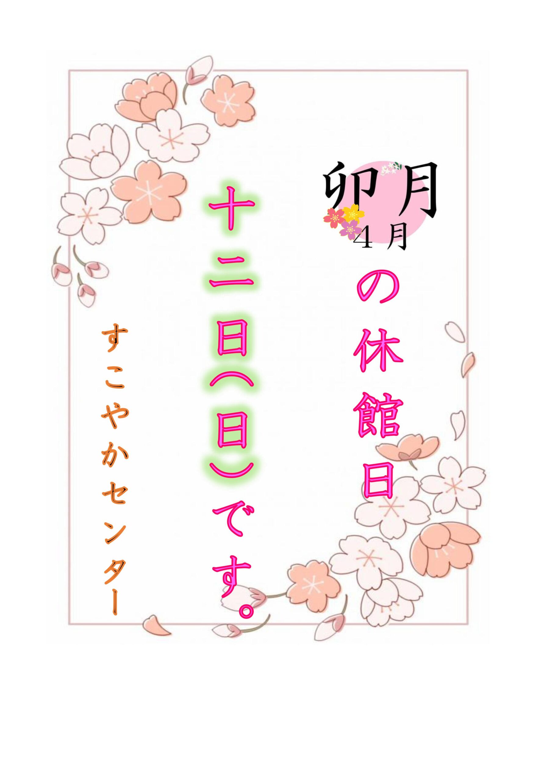 4月 休館日のお知らせ