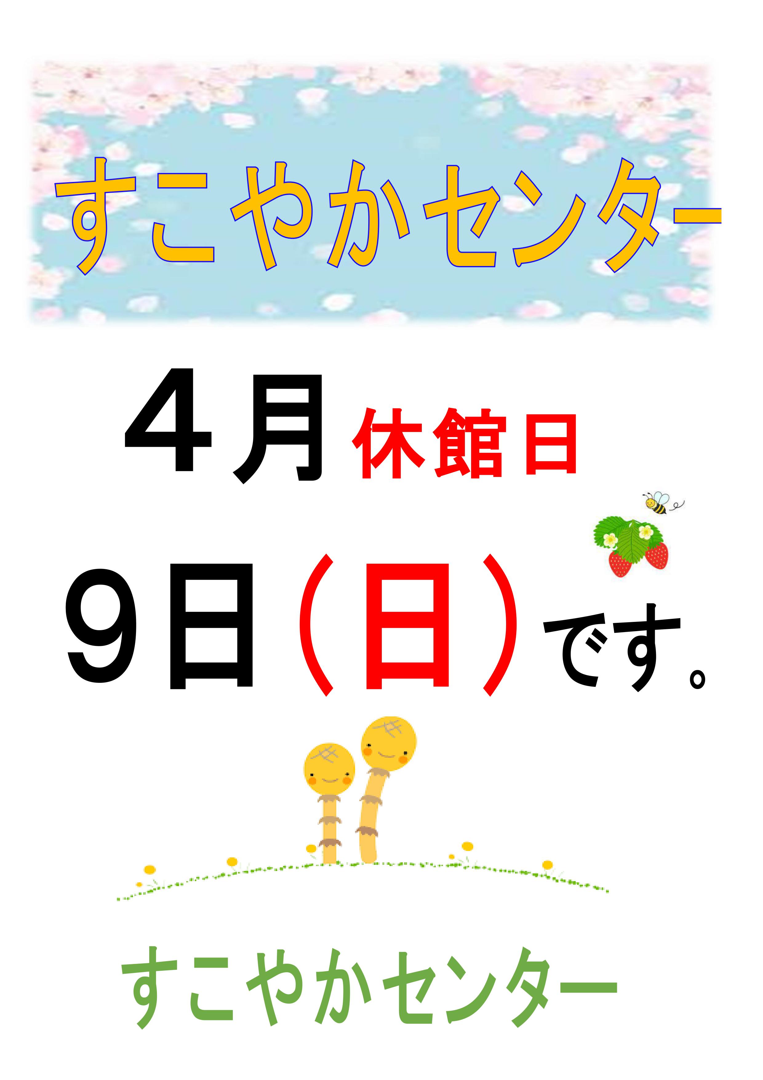 ☆休館日 4月9日(日)第2日曜日