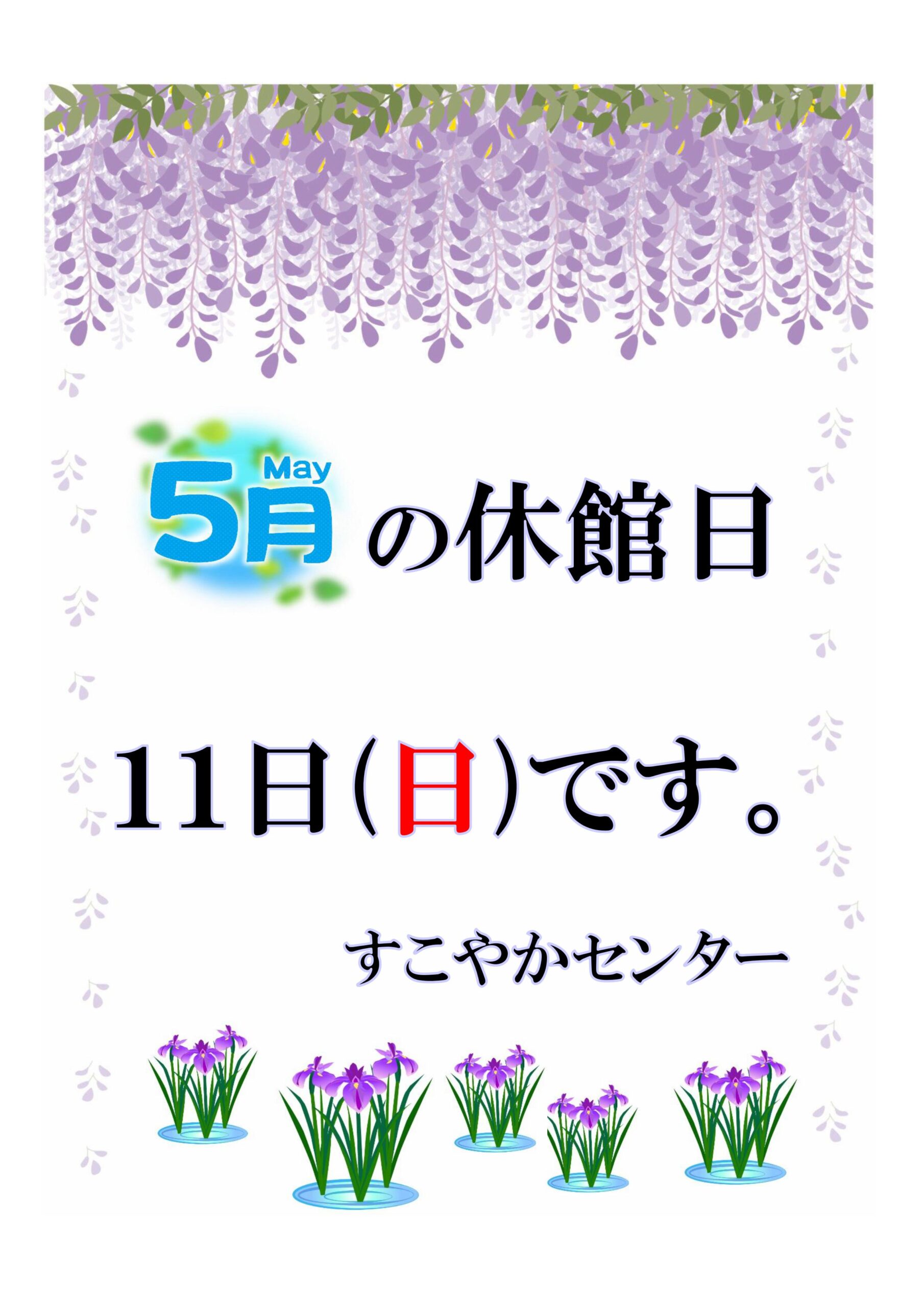 5月の休館日は、11日(第2日曜日)となっております。