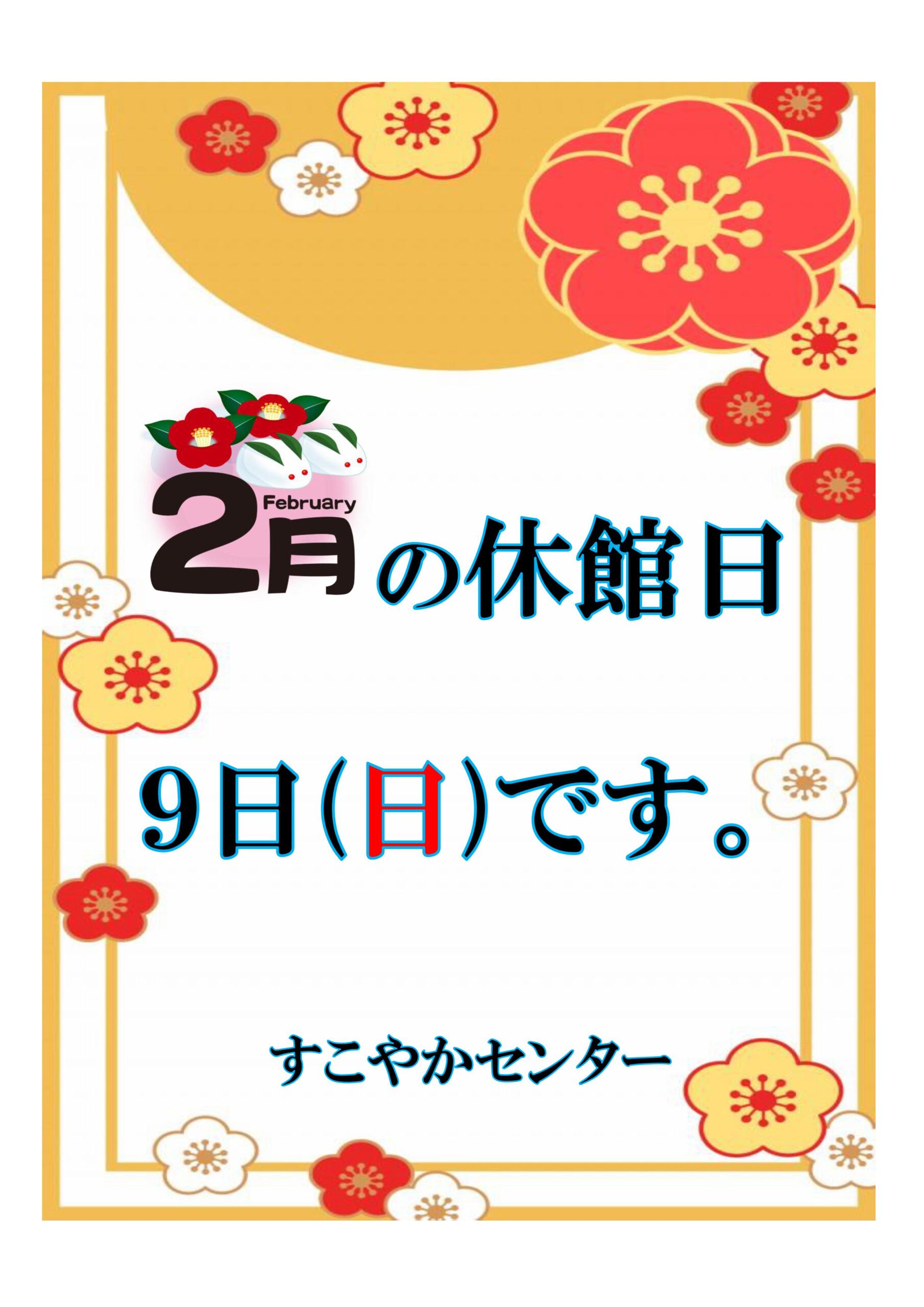 2月の休館日は、9日(第2日曜日)となっております。