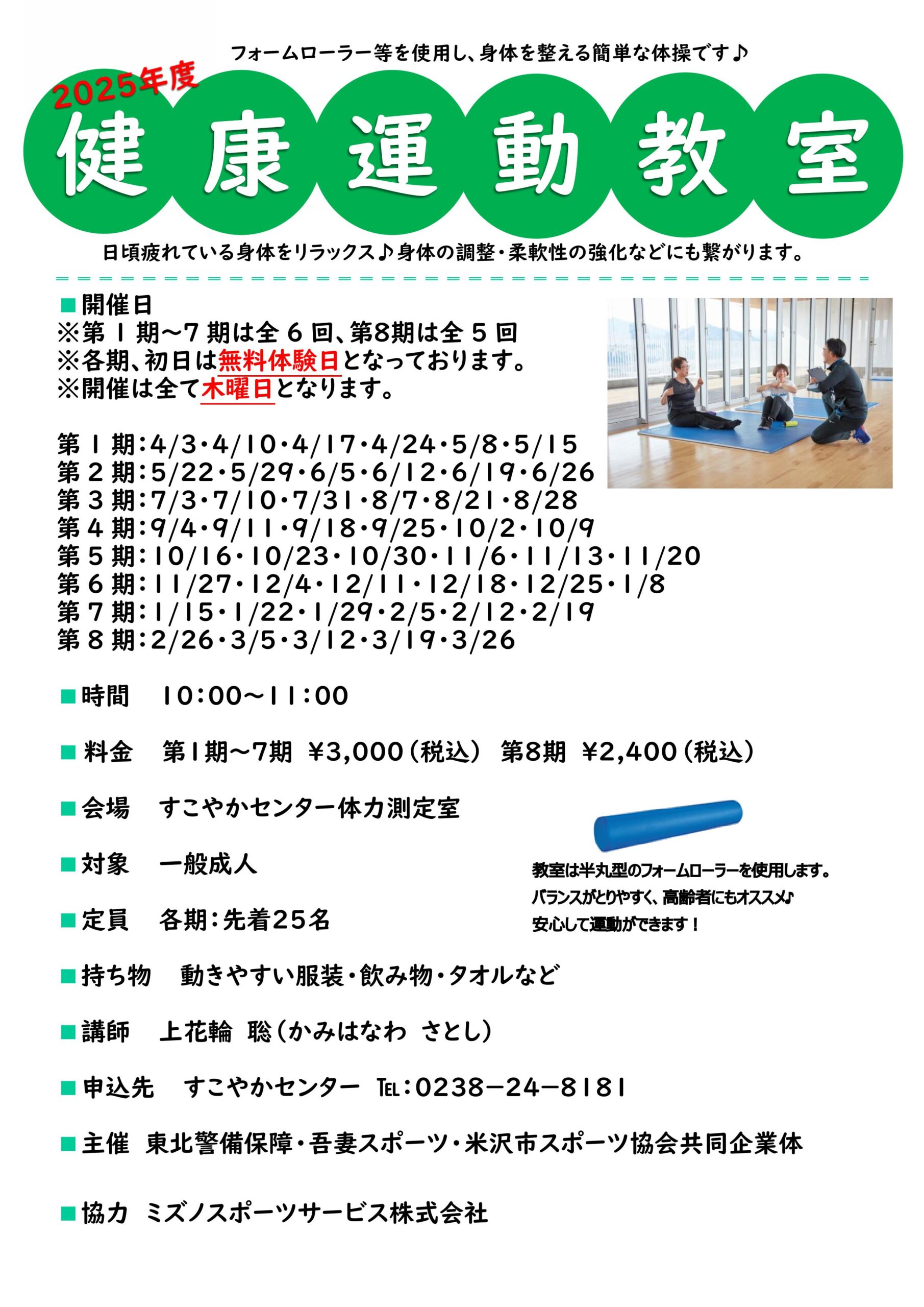申込は、すこやかセンター受付(TEL:0238-24-8181)にお願いします。