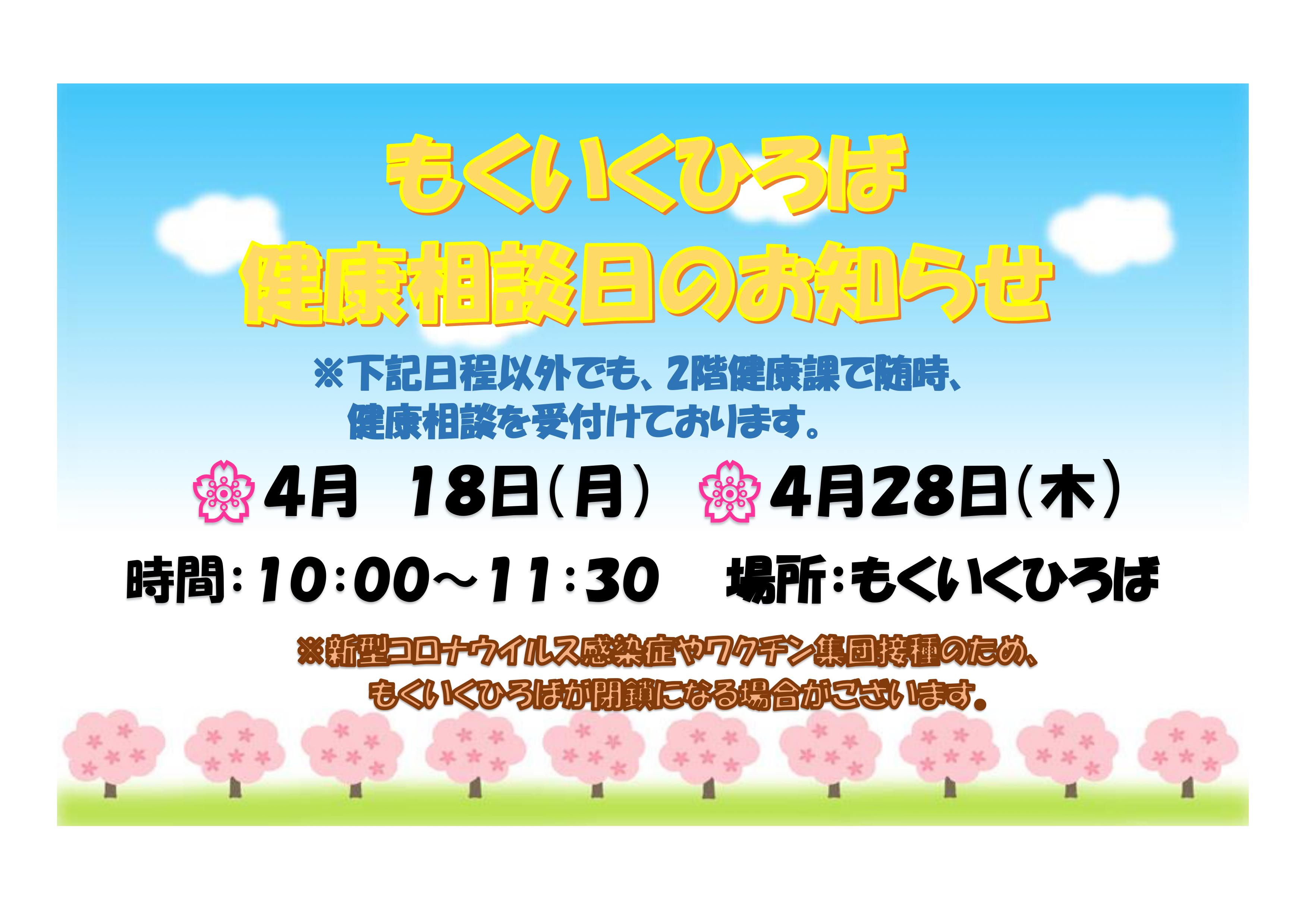 4月 もくいくひろば健康相談日のお知らせ