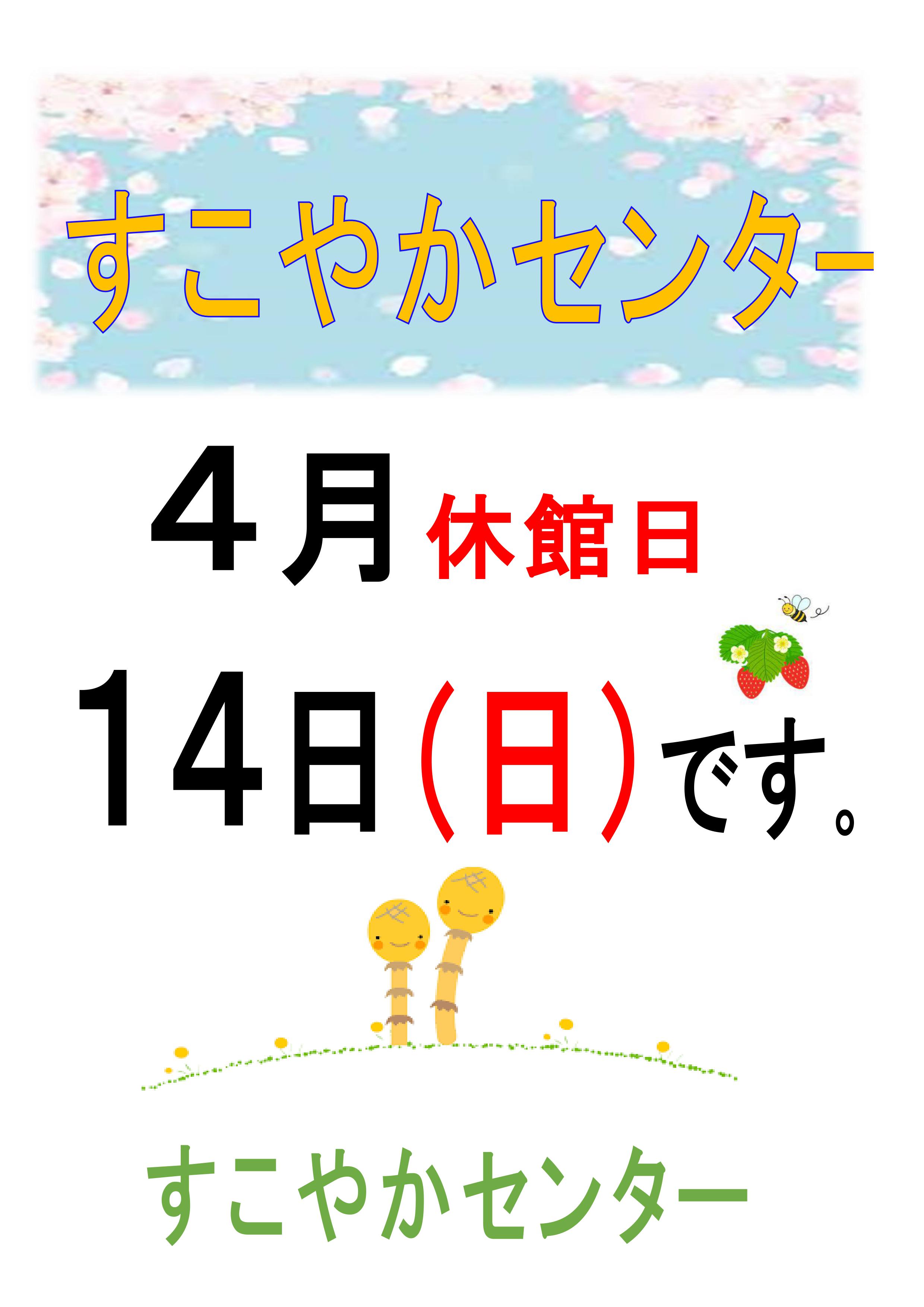 4月の休館日は、14日(第2日曜日)となっております。