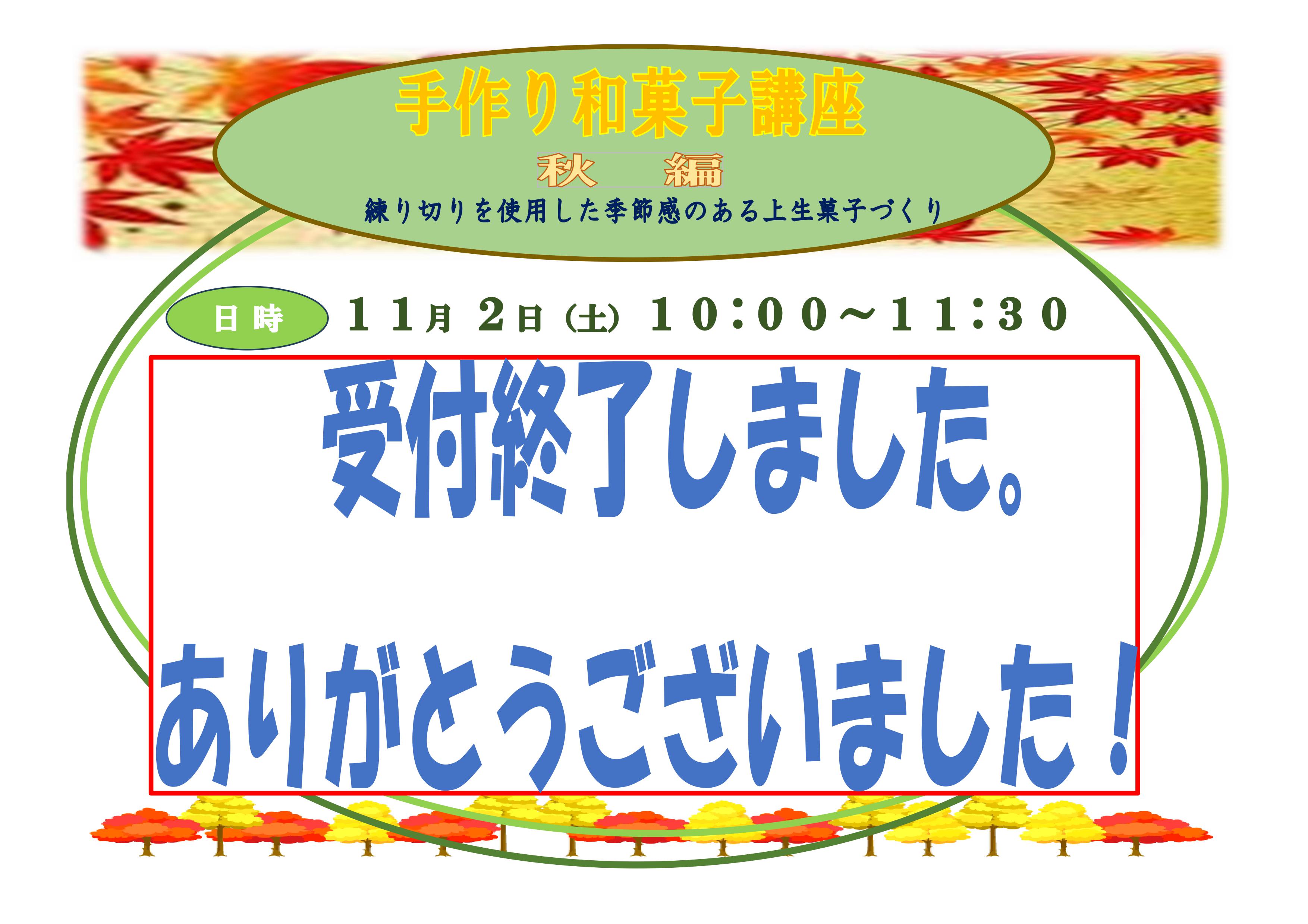 自主事業「手作り和菓子講座 秋編」受付終了のお知らせ