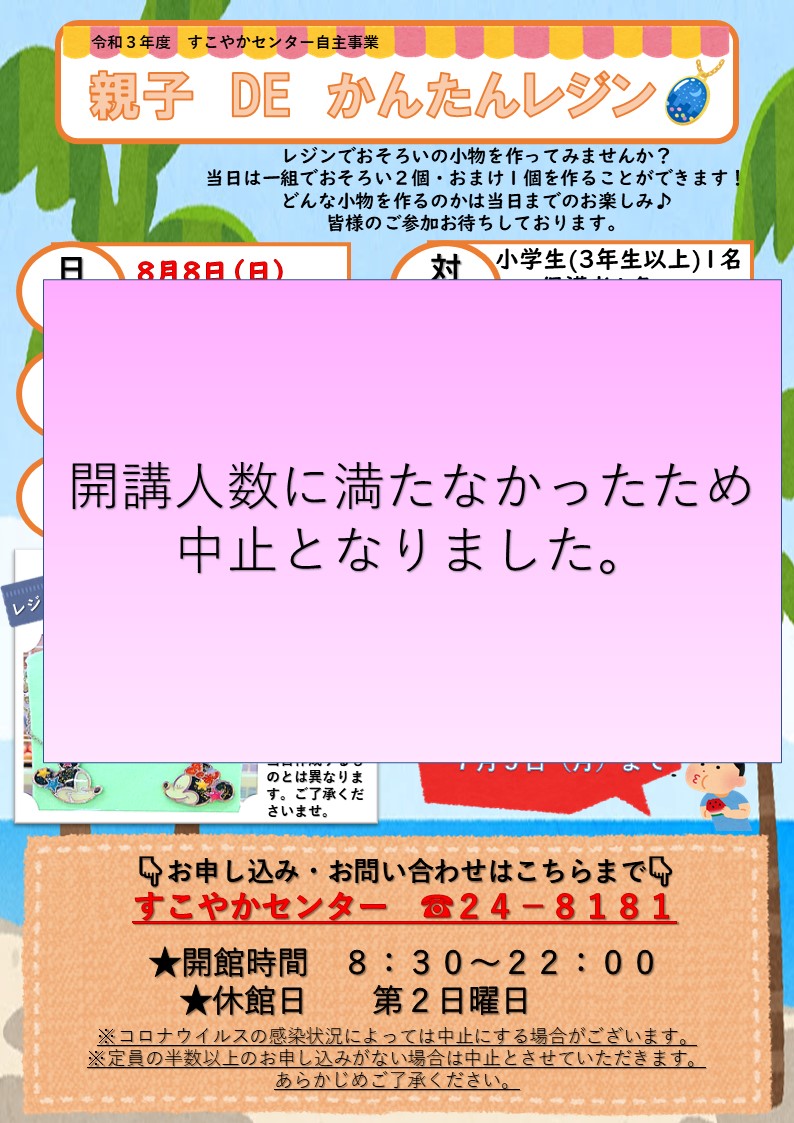 8月8日(日)開講の自主事業「親子DEかんたんレジン」は